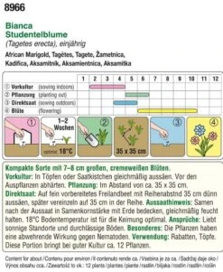 25°C Bodentemperatur ist für die Keimung optimal. Empfindlich gegen Spätfröste, daher sollte die mittlere Tagestemperatur bei der Aussaat 12–18°C erreichen.