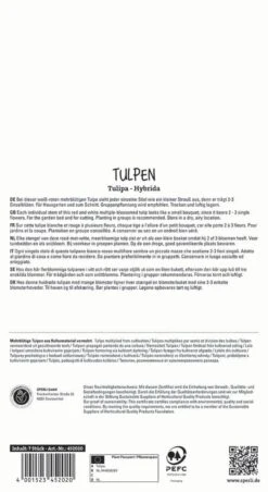 Ein rot gelbes Blütenfeuerwerk bietet diese gefranste, gefüllte, späte Tulpe. Ihre Wuchshöhe lässt perfekt eine Kübel – und Topfbepflanzung zu.
